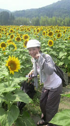 夏の花ひまわりを見に、佐用の南光町に、行って来ました。毎年、メンバーの橋口と行っますだけど、今年は、ひまわりが小さい感じがしました。