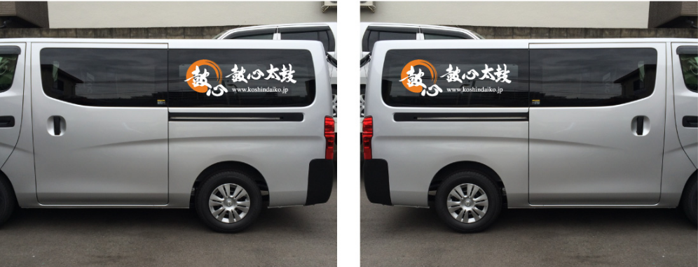 鼓心太鼓のメンバーの皆様、車来ました、演奏にいつでも出動できますよ、