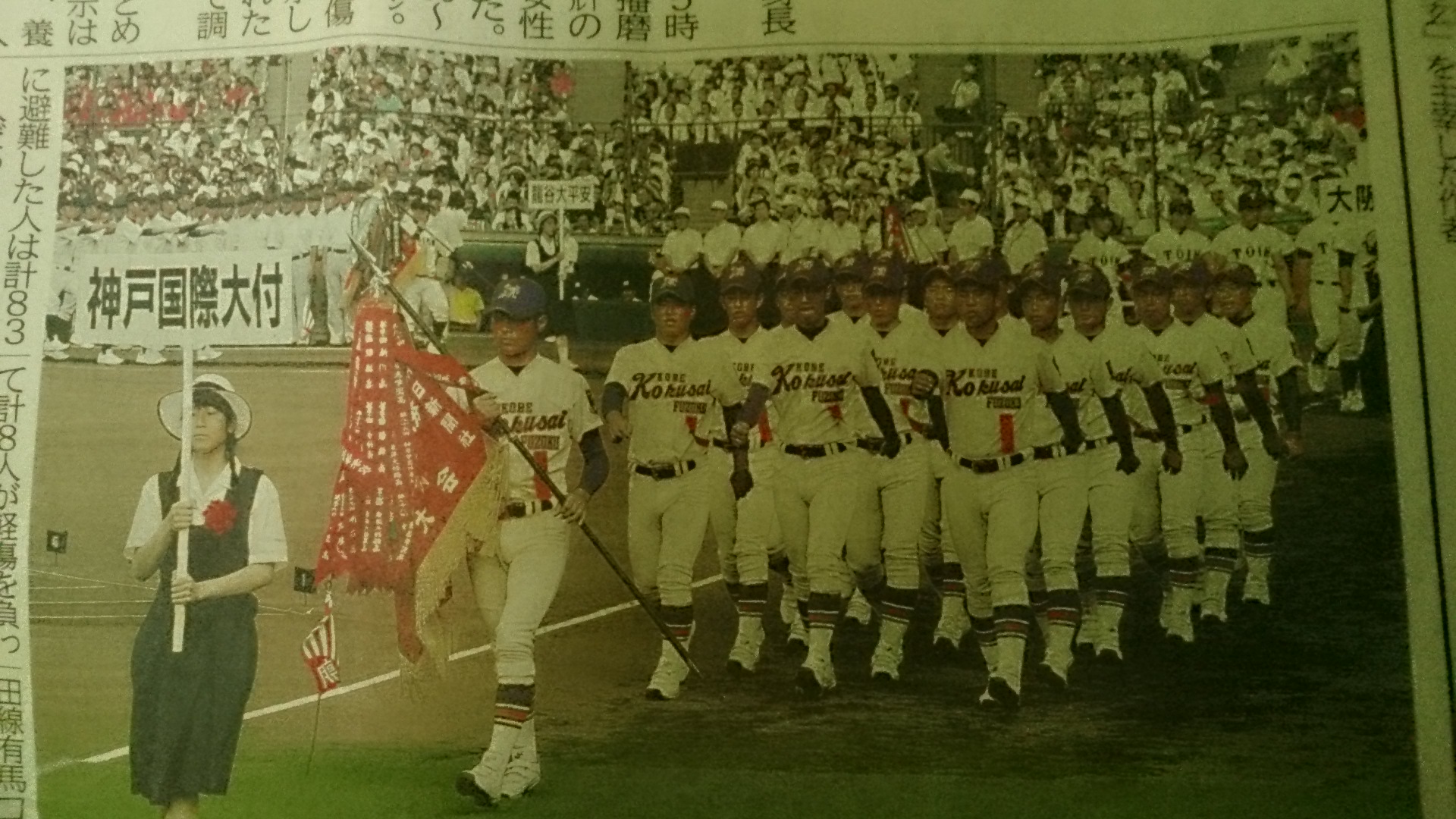 兵庫県の代表で夏の大会は初出場の我輩の母校の神戸国際大学附属高校を初め代表49校の入場、