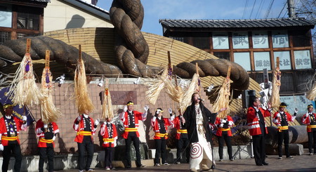 この木遣り唄は、御諏訪太鼓の曲、飛竜三段がえしの前に鳴くのが有名です。
