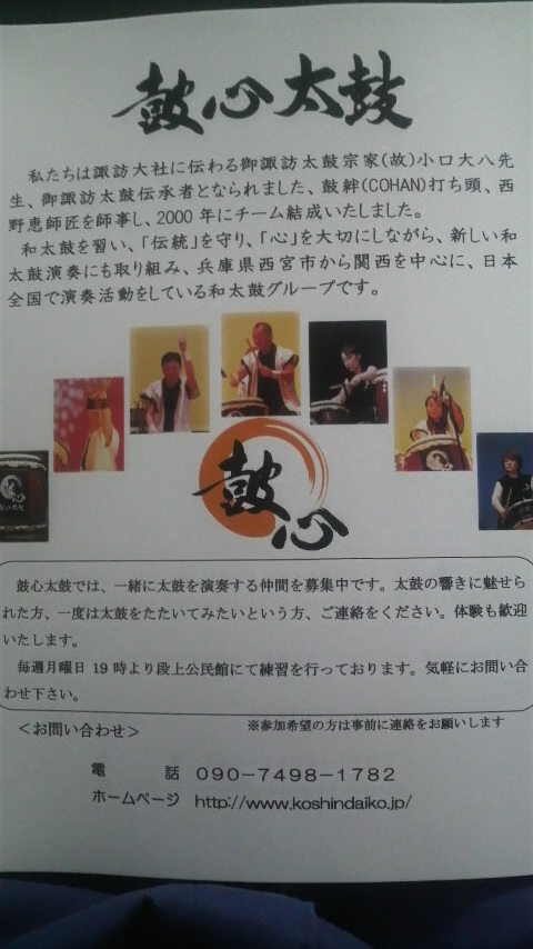鼓心太鼓を宜しくお願いいたします。