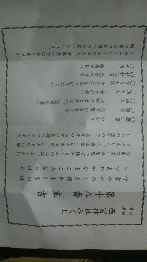 みんなでおみくじを引きました、二人は大吉、我輩は末吉でした、しかし願い事はかなうそうです。嬉しい…かなうと信じて今年1年頑張ります。